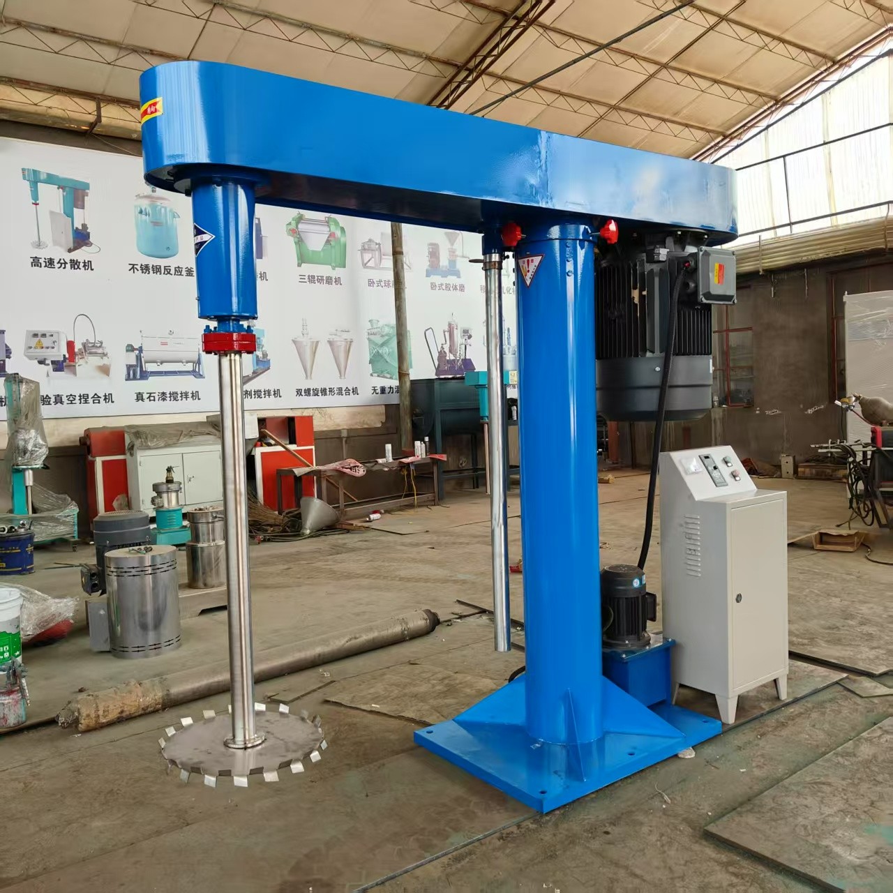 高速分散机在涂料生产中起着至关重要的作用,其核心功能是通过高速旋转的分散盘产生强烈的剪切、撞击和摩擦作用,实现颜料、填料等固体颗粒在液体介质中的均匀分散,从而提升涂料的稳定性、附着力、遮盖力和色泽一致性。